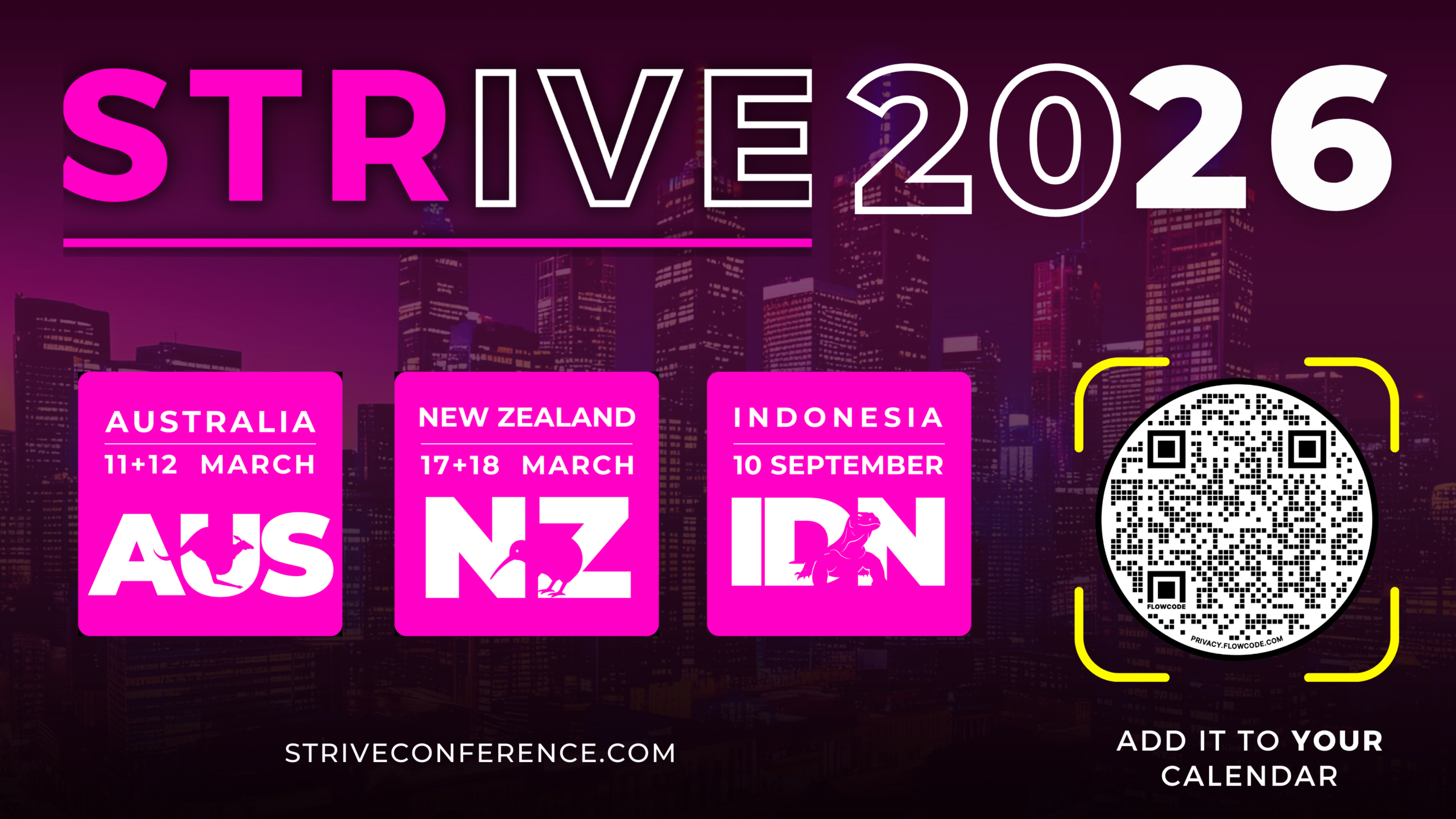 Join us for the most anticipated gathering of short-term rental proprietors, owners, and managers in Australasia. STRive to Thrive returns, bigger and better, spanning two sets of dates: 11th-12th March 2026 in Australia, 17th-18th March 2026 in New Zealand, and 10th September 2026 in Bali.