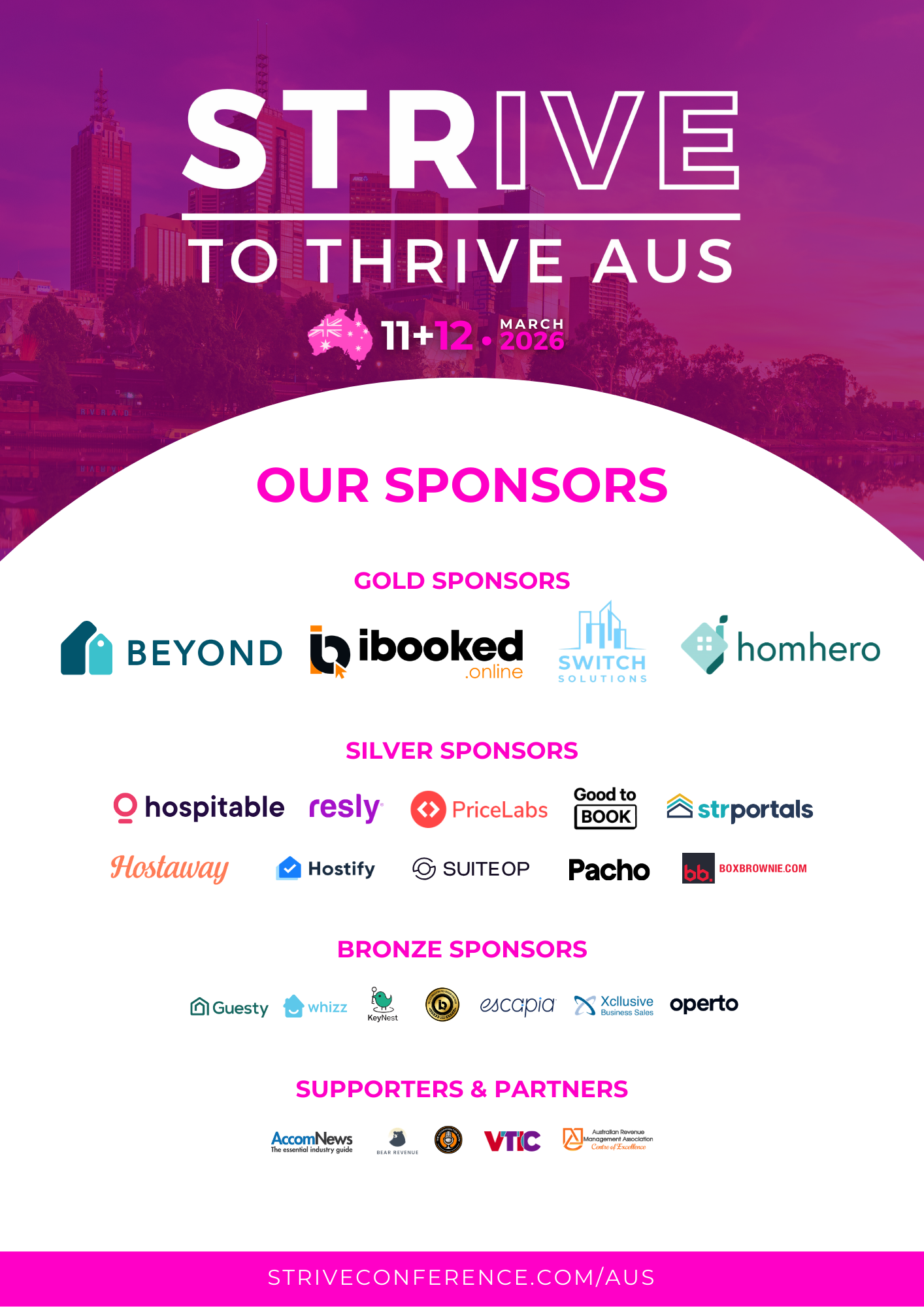 Showcase your brand at Strive Conference and connect with top industry leaders, innovators, and decision-makers. As a sponsor, you’ll gain premium exposure, build valuable partnerships, and position your business at the forefront of the hospitality and accommodation industry. Don’t miss this opportunity! Express your interest today and tailor a package to match your goals by filling out the form below, and secure your spot!